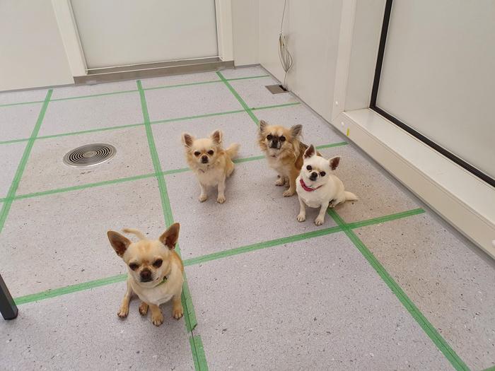 В исследовании участвовали две группы собак. В первую вошли четыре маленькие собаки, все породы чихуахуа. Во вторую — три крупные собаки: тибетский мастиф, ньюфаундленд и английский мастиф.